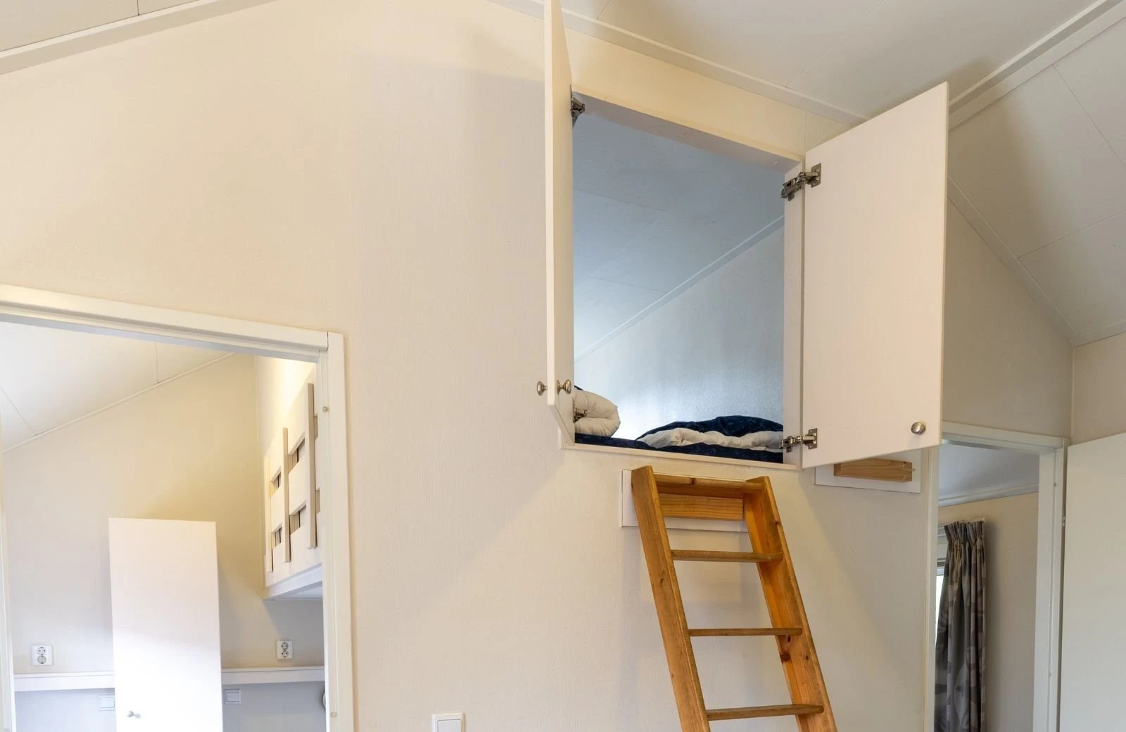 The lodge features 2 bedrooms with comfortable box spring beds. Via a small staircase you reach the loft, where there are 2 more sleeping places. Your own attic room makes it extra cozy!