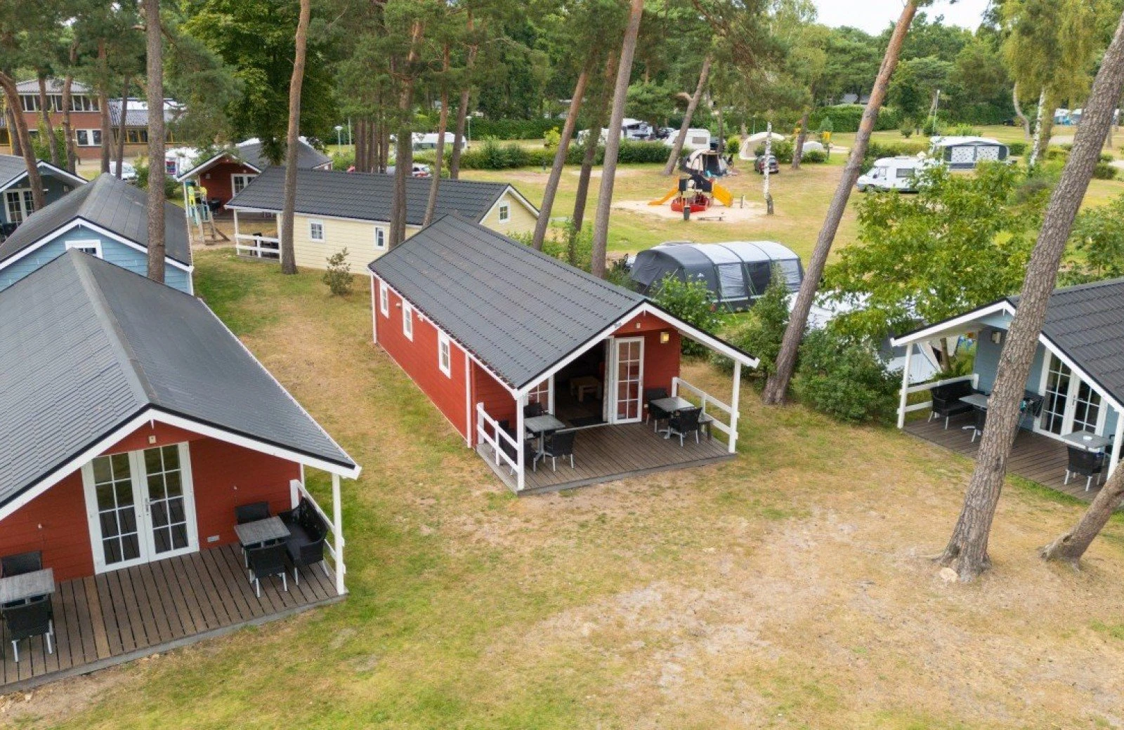 Our lodges are centrally located on the campsite, close to the swimming pool and the Plaza, and are fully equipped for a carefree stay.
