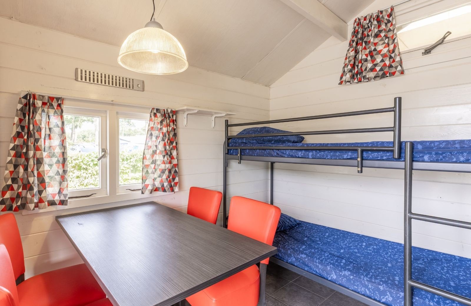The cabins are centrally located on the campsite, overlooking the miniature golf course. Ideal for a short stay with a practical layout.